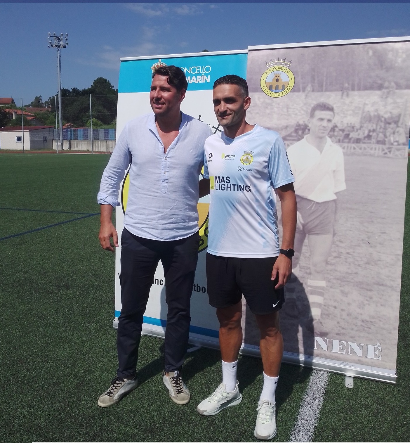 Precisamente ayer, que se conocía la posible composición del Grupo V de la Primera División Autonómica en la que militará el Marín Club de Fútbol esta próxima temporada 2025-2026, la entidad franjiiazul ha realizado en el Estadio Municipal San Pedro la presentación de sus tres últimos fichajes, con los que da por cerrada la plantilla que el club pondrá a las órdenes de Sergio Martín.