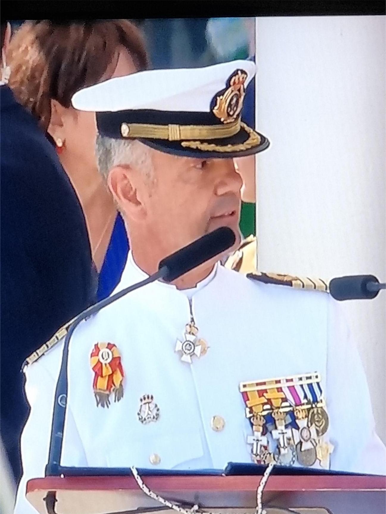 Después se dirigió a los nuevos oficiales felicitándolos por haber conseguido, además de la graduación militar, el título de Ingeniería Mecánica de la Universidad de Vigo . “Pero - añadió - esto no fue más que la fase de preparación porque lo importante es ahora el despliegue y la misión que os viene”. Se expresó en modo marino como si los nuevos oficiales se hicieran a la mar ayer y les conminó a servir a España y a los españoles. “Encontraréis tempestades que no os permitirán navegar como quisierais, niebla y baja visibilidad que confundirán a los navegantes; bajos y arrecifes peligrosos pero creedme que sabréis adaptaros porque se os ha preparado para ello”. Les recordó también que la capacidad de mandar supone que cuando aparezca una zozobra vuestra dotación se gire y os mire con confianza en vuestra decisión basada en la autoridad moral y el prestigio al que tenéis que haceros acreedores pensando en los vuestros antes que en vosotros mismos; mandar es servir a vuestra gente”