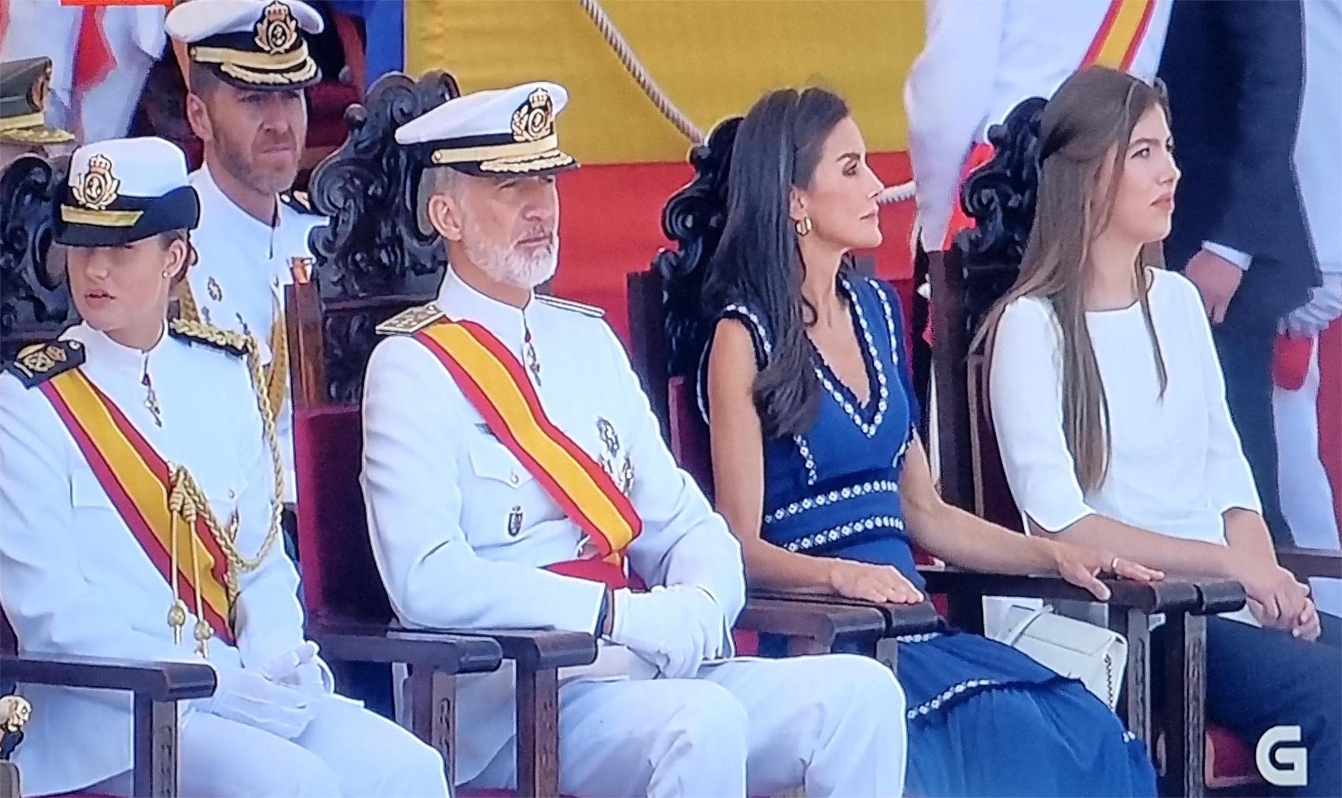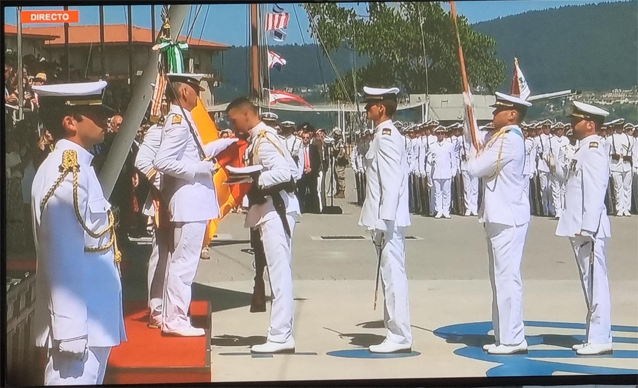Siguiendo el guión que en Carriola adelantábamos anteriormente, se celebró el acto de entrega de Despachos a los nuevos oficiales de la Armada y Jura de Bandera de los hasta ahora aspirantes con la singularidad de la presencia y participación directa de la Princesa Leonor que recibió de manos de su propio padre el Rey Felipe VI la Gan Cruz de Mérito Naval tras la que pasó a ocupar un lugar entre los miembros de la