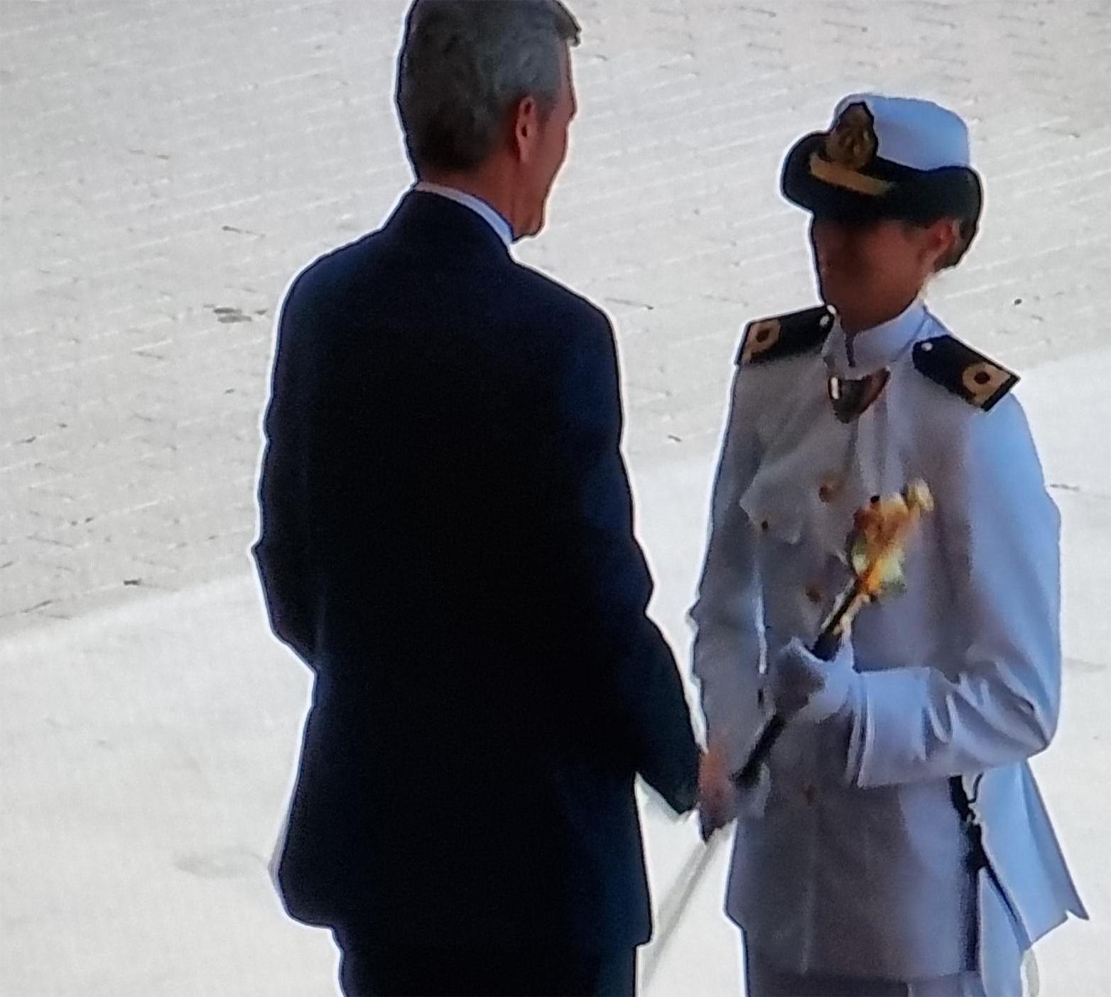 Las autoridades presentes compartieron el momento de la entrega de los Despachos de empleo a los nuevos oficiales que ayer finalizaron el periplo de su preparación en la Escuela Naval Militar después de cinco años de estudios.