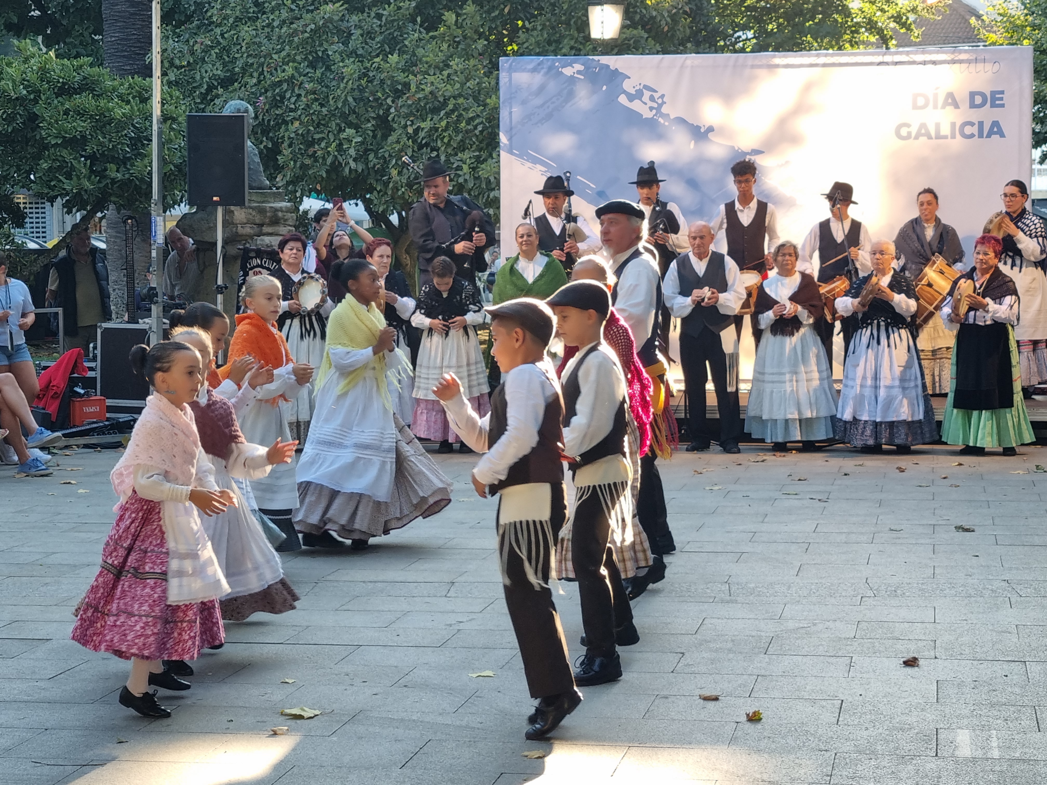 La Alameda Rosalía de Castro fue ayer durante todo el día un hervidero de personas que quisieron vivir la jornada festiva del Día de Galicia que comenzó con un sencillo acto de inicio con presencia de las autoridades y continuó con la "Romaría Popular" que llegó hasta ya anochecido