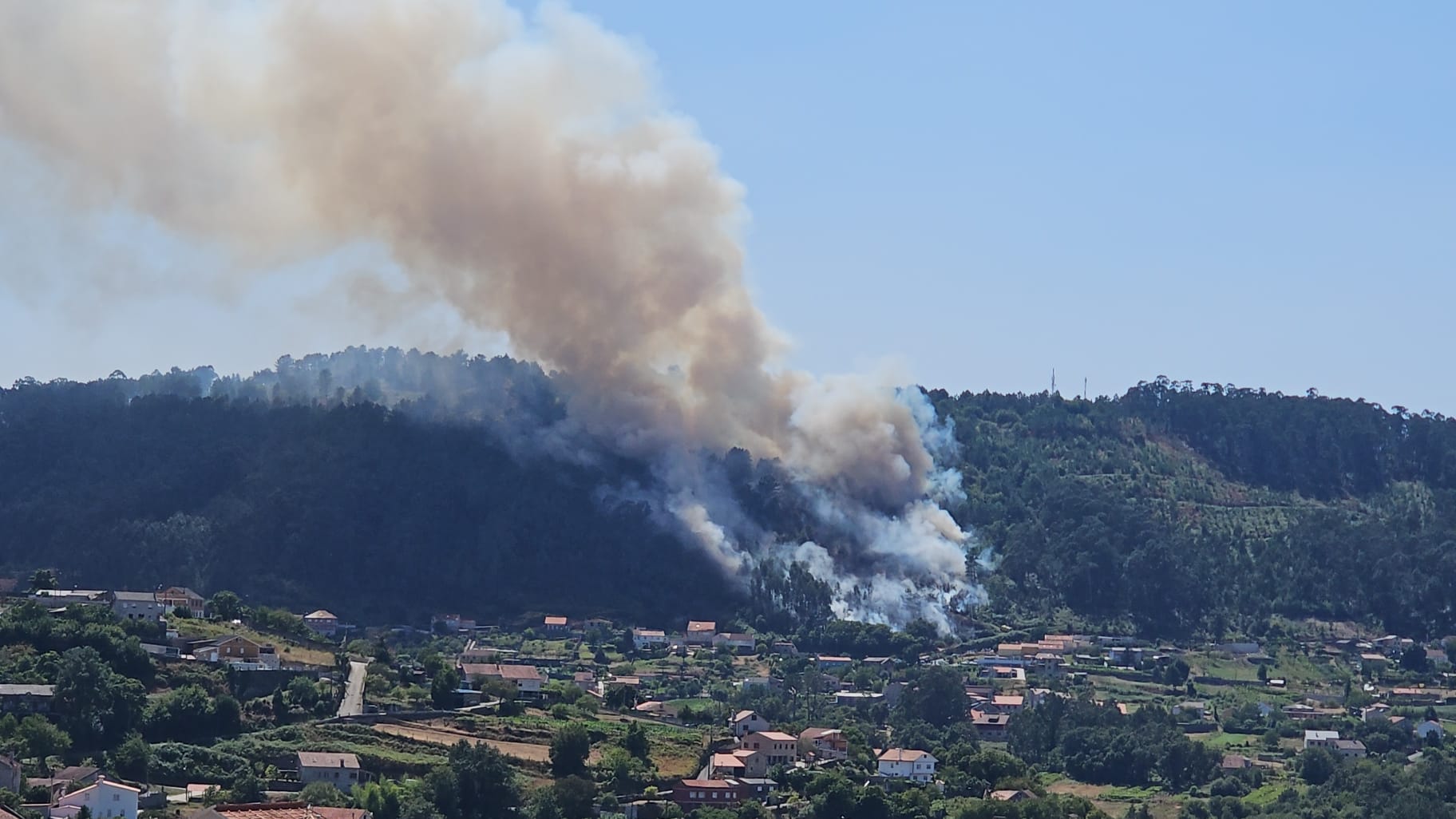 Y desde varios puntos nos han llegado fotografías de este nuevo y todavía aún incipiente incendio en A Moreira donde hay casas cercanas que pudieran verse en peligro si los medios que se están utilizando no son capaces de cortarlo y en ello están, al menos un helicóptero que va y viene hacia la ria y hacia el fuego que cuenta a su favor con el sofocante calor de estas horas y una brisa favorable a su propagación.