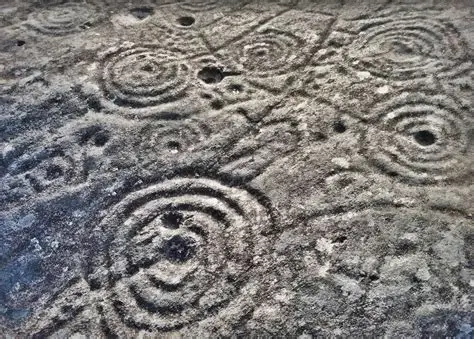 Comparativa entre grabados laberínticos de Irlanda (arriba) y Mogor (abajo)