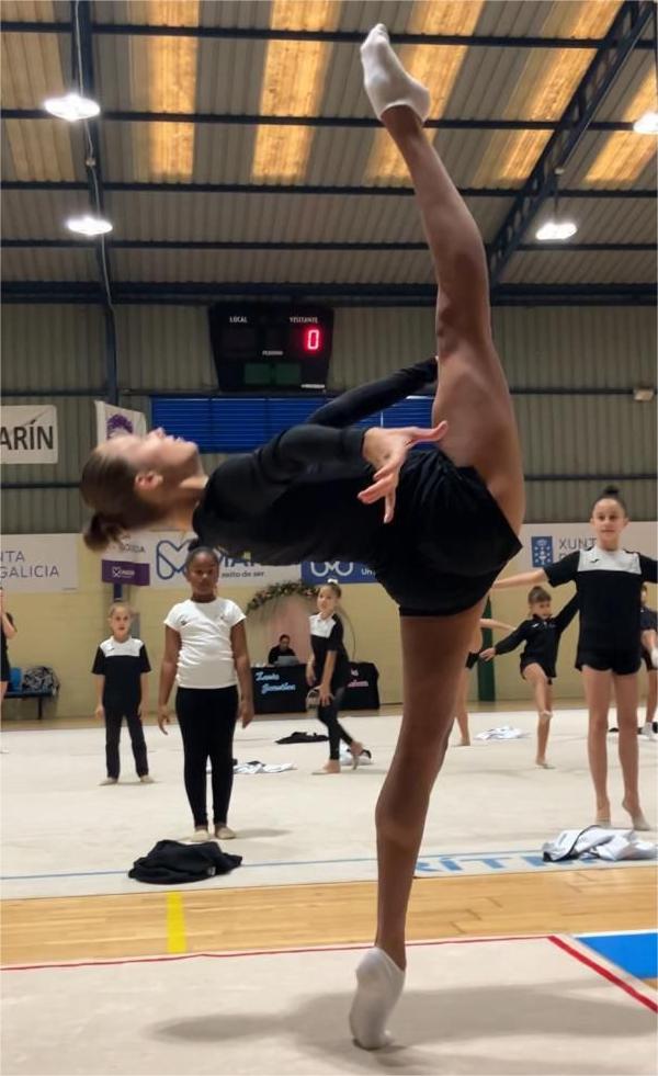 La española Lucía González y la alemana Anastasia Simakova fueron las dos estrellas de nivel mundial que dirigieron la masterclass que estuvo organizada por el club marinense “Rítmica Agarimo” conjuntamente con “RSG Vídeos” contando con la colaboración del concello