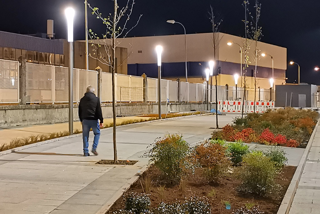 Las nuevas luminarias instaladas en el paseo de la Avenida de Ourense, popularmente conocido como "Paseo del Colesterol", funcionan ya desde hace unas noches e iluminan a las personas y bicicletas ...