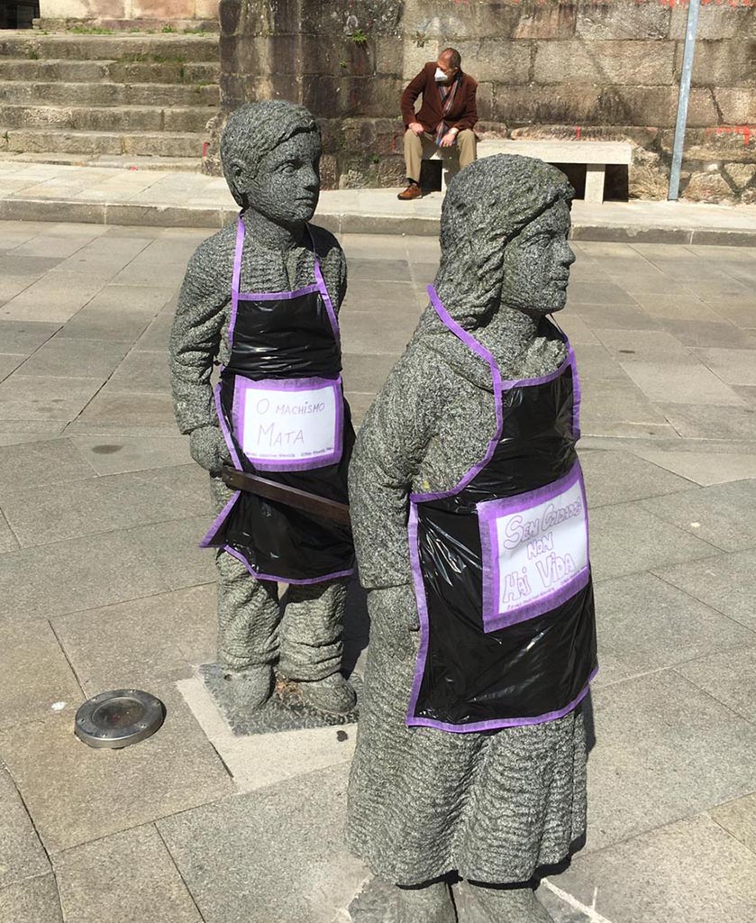 Las estatuas de la Danza de Espadas aparecen reivindicativas.