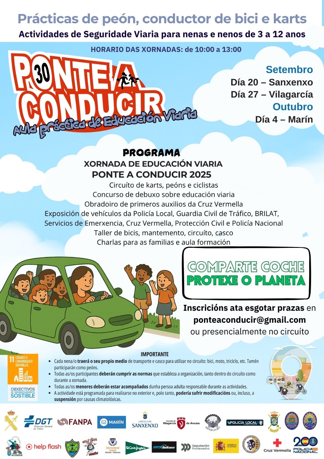 El próximo sábado día 4 los niños y las niñas de Marín disfrutaràn de la jornada de educación vial “Aprende a Conducir”, en el parque ...
