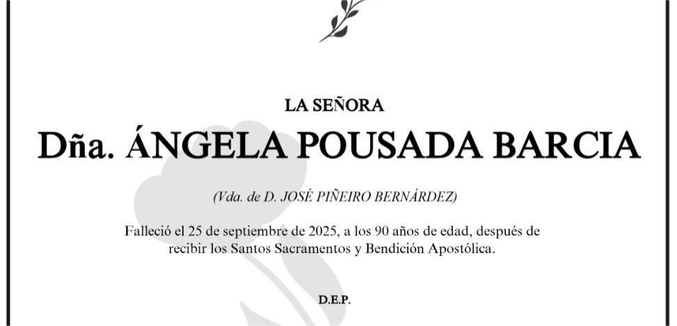 La funeraria SAN MARCOS comunica el fallecimiento de Doña ÁNGELA POUSADA BARCIA, cuyos restos mortales permanecerán en el tanatorio San Marcos ...