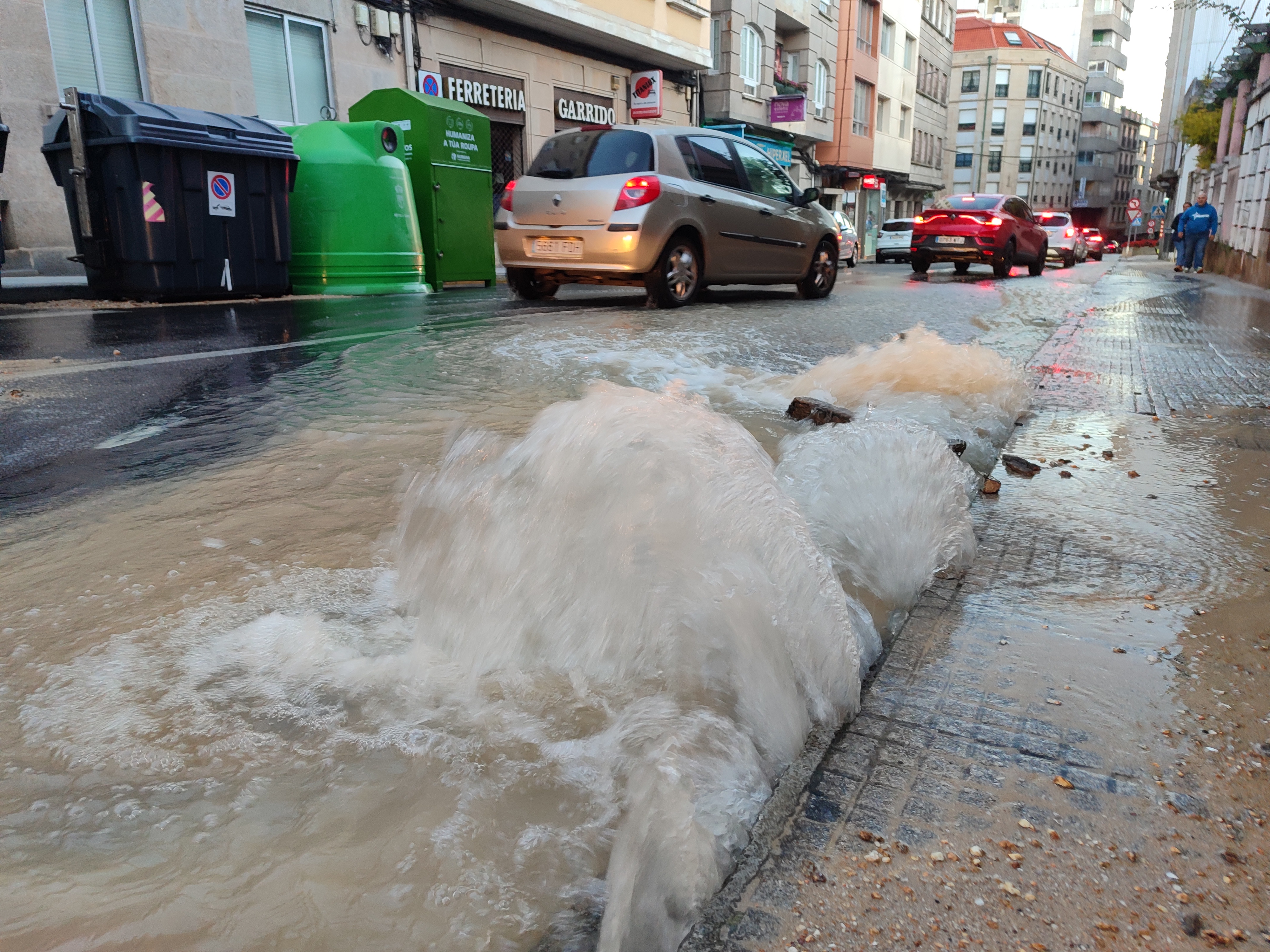 El reventón se produjo a las ocho de la mañana en la parte baja de la calle provocando la salida de grandes cantidades de agua durante unos veinte minutos