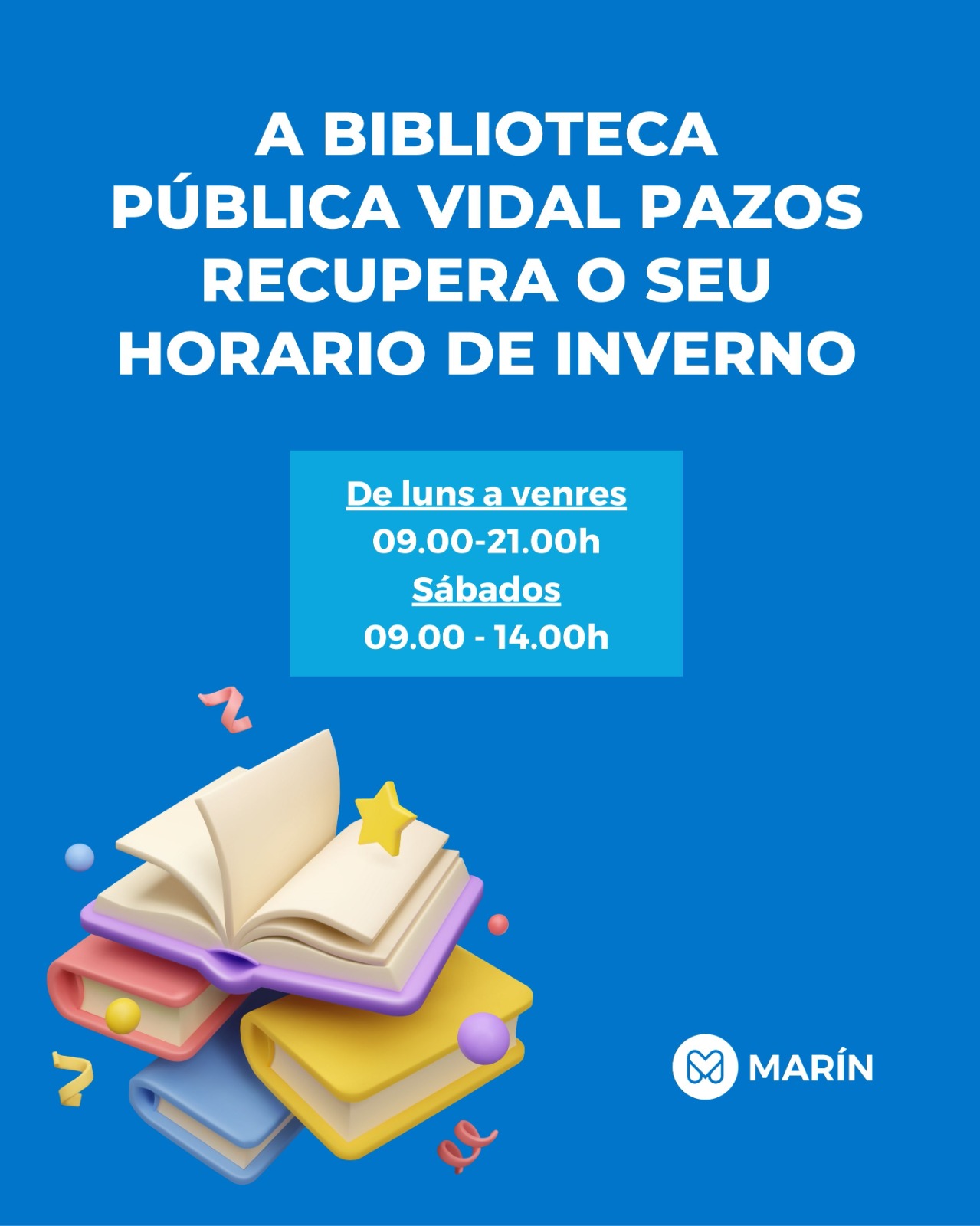 La Biblioteca Municipal “Vidal Pazos” recupera su funcionamiento normal a lo largo del curso con la puesta en servicio del horario habitual de ...