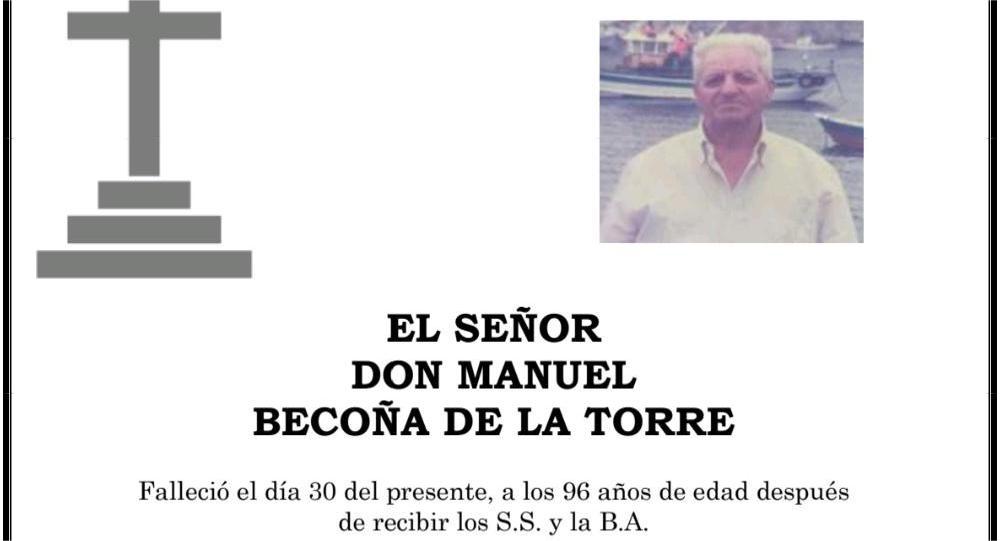 La funeraria LA FE comunica el fallecimiento de D. MANUEL BECOÑA DE LA TORRE, cuyos restos mortales permanecerán en su tanatorio de Marín, sala ...