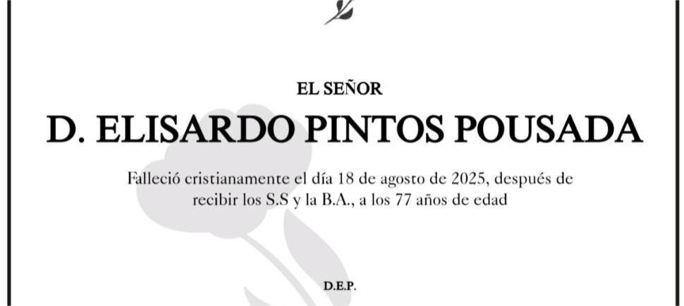 La funeraria SAN MARCOS comunica el fallecimiento AYER, día 18 de agosto de don ELISARDO PINTOS POUSADA cuyos restos mortales permanecerán en ...