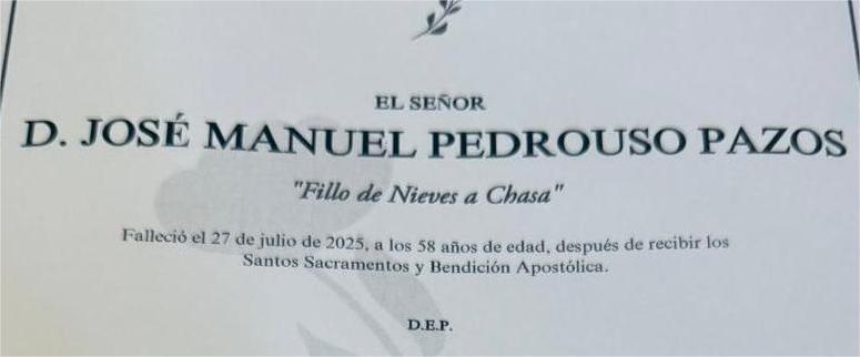 La funeraria SAN MARCOS comunica el fallecimiento HOY, día 27 de julio, de don JOSÉ MANUEL PEDROUSO PAZOS cuyos restos mortales permanecerán ...