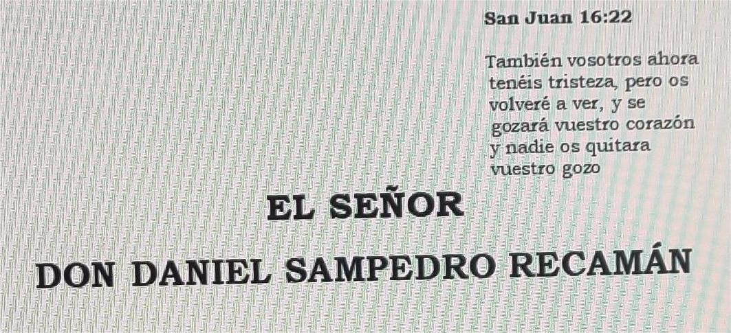 La funeraria LA FE comunica el fallecimiento AYER, día 22 de julio, de don DANIEL SAMPEDRO RECAMÁN cuyos restos mortales permanecerán en el ...