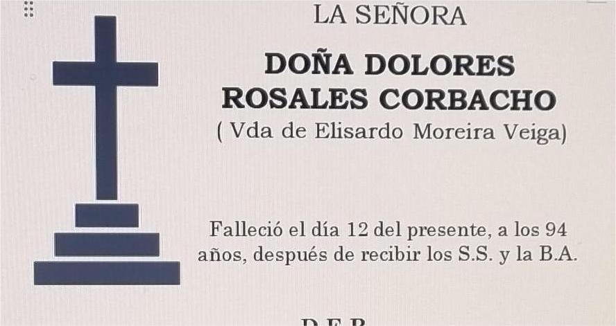La funeraria SAN MARCOS comunica el fallecimiento hoy, día 12 de julio, de doña DOLORES ROSALES CORBACHO cuyos restos mortales permanecerán en ...