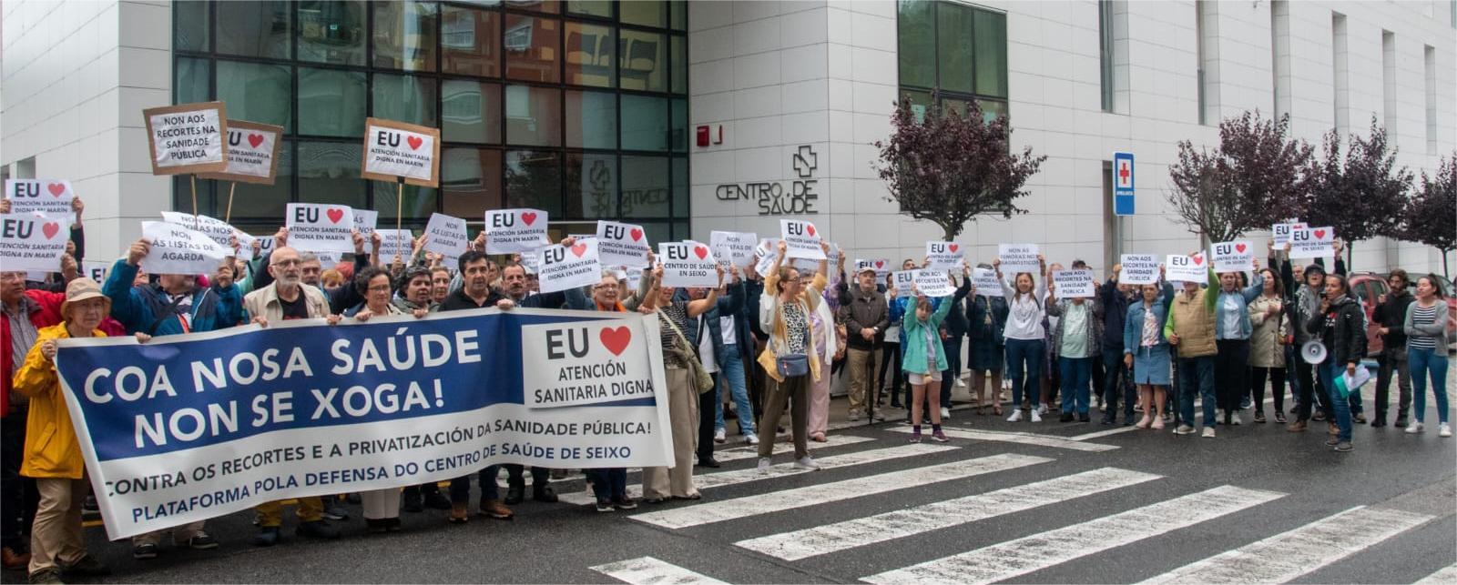 Concorrida asistencia, a pesar do mal tempo, á concentración en Marín para denunciar as longas listas de agarda e a situación da sanidade ...