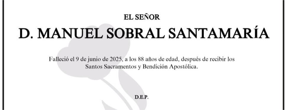 La funeraria SAN MARCOS comunica el fallecimiento hoy, día 9 de junio, de don MANUEL SOBRAL SANTAMARÍA, cuyos restos mortales permanecerán en ...