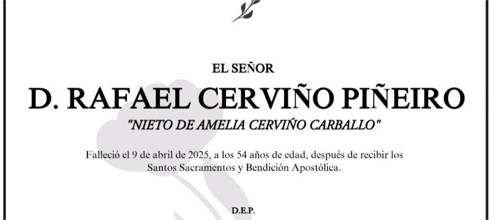La funeraria SAN MARCOS comunica el fallecimiento HOY día 9, de abril de Don RAFAEL CERVIÑO PIÑEIRO cuyos restos mortales permanecerán en el ...