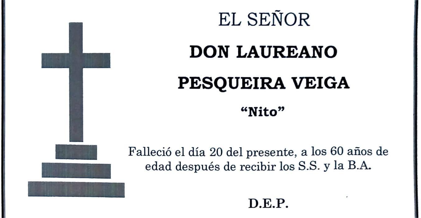 La funeraria LA FE comunica el fallecimiento HOY día 20, de don LAUREANO PESQUEIRA VEIGA cuyos restos mortales permanecerán en el Tanatorio SAN ...