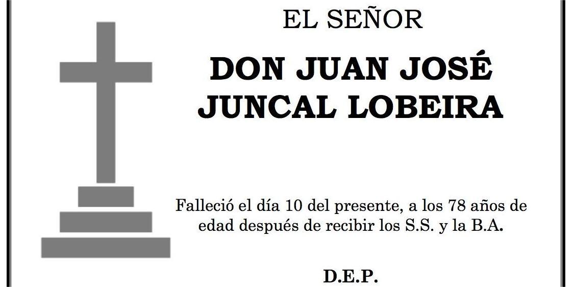 La funeraria LA FE comunica el fallecimiento hoy, día 10 de enero, de don JUAN JOSÉ JUNCAL LOBEIRA cuyos restos mortales permanecerán en el ...