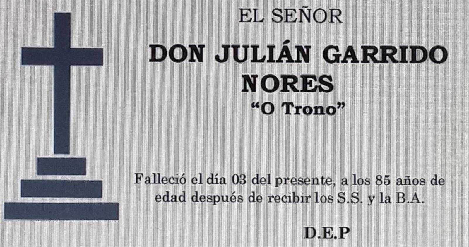 La funeraria LA FE comunica el fallecimiento ayer día 3 de febrero, de Don JULIÁN GARRIDO NORES cuyos restos mortales permanecerán en el ...