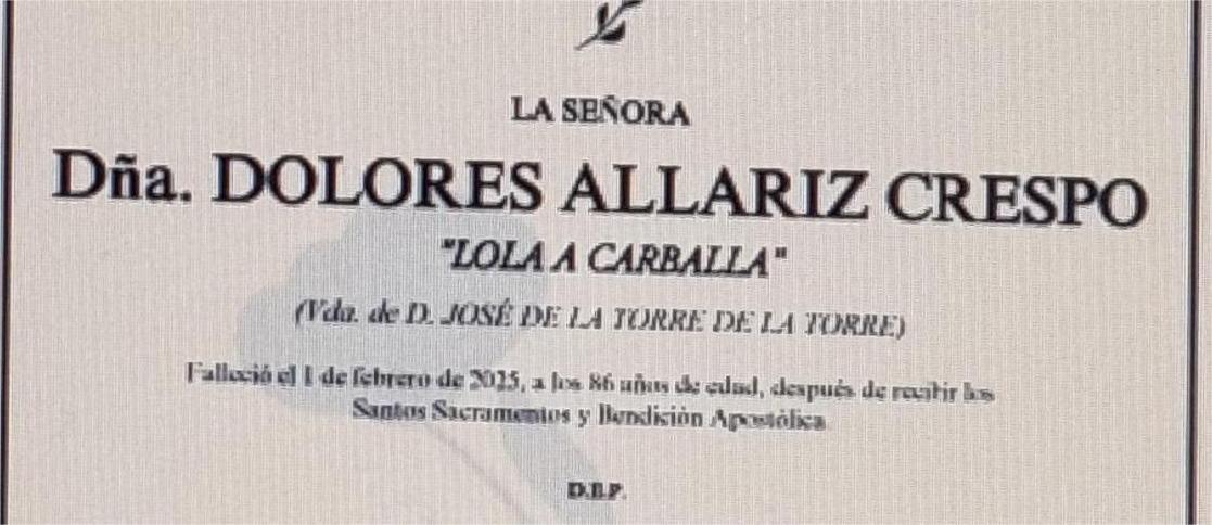 La funeraria SAN MARCOS comunica el fallecimiento ayer día 1 de febrero, de Dña. DOLORES ALLARIZ CRESPO cuyos restos mortales permanecerán en el ...