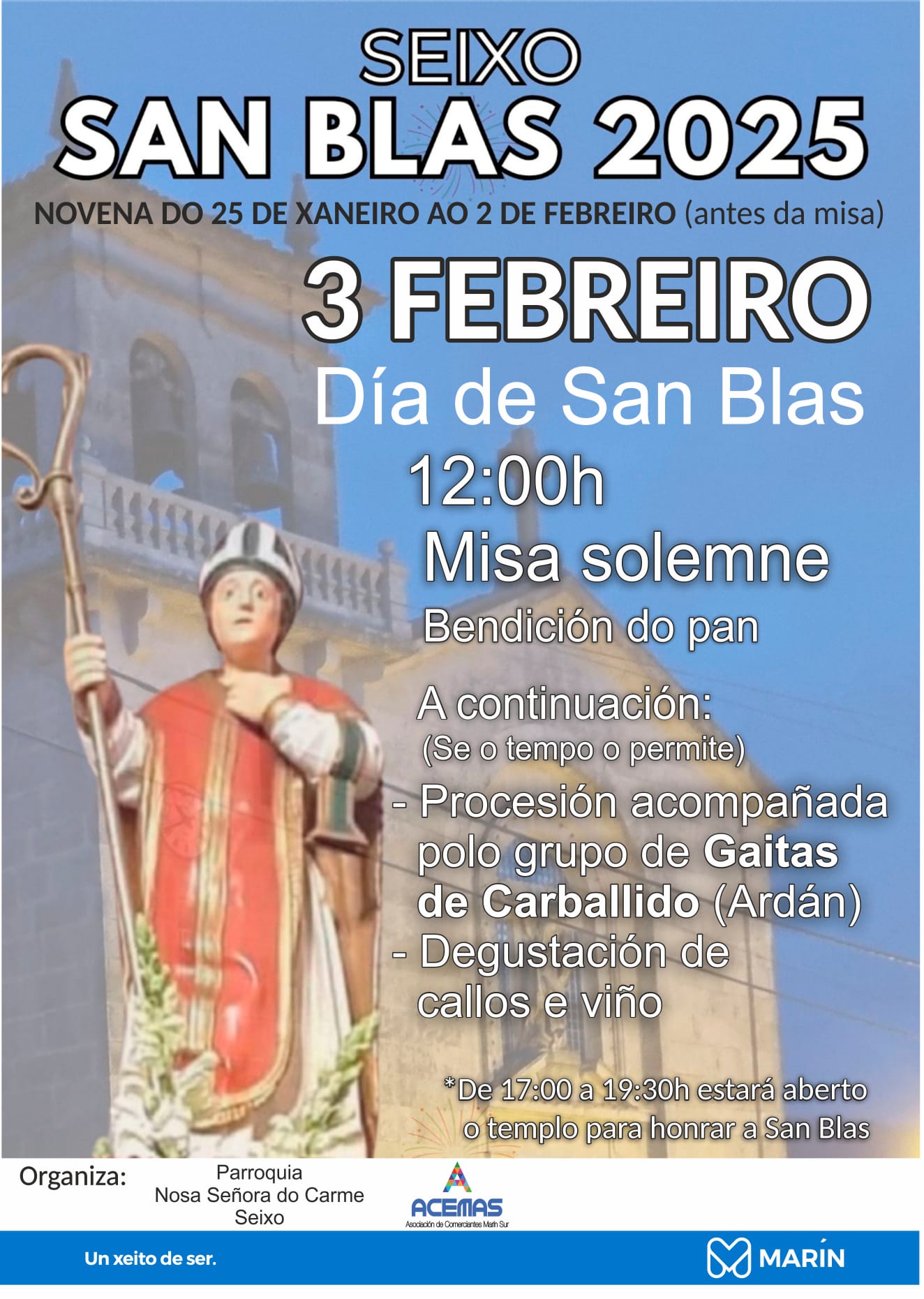 A las doce del mediodía se iniciará la celebración de la Misa de San Blas que, ...