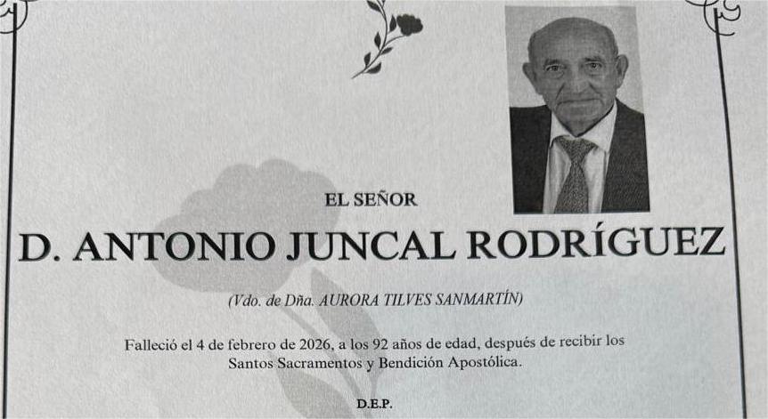 Fallece Don ANTONIO JUNCAL RODRÍGUEZ a los 92 años de edad