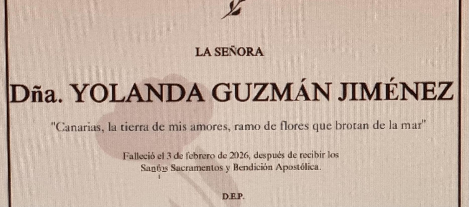 La funeraria SAN MARCOS comunica el fallecimiento hoy, día 3 de enero, de doña YOLANDA GUZMÁN JIMÉNEZ cuyos restos mortales permanecerán en ...