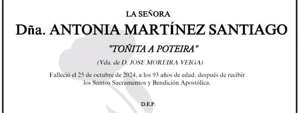 La funeraria San Marcos comunica el fallecimiento, hoy viernes día 25 de Doña ANTONIA MARTÍNEZ SANTIAGO cuyos restos mortales se velan en la ...