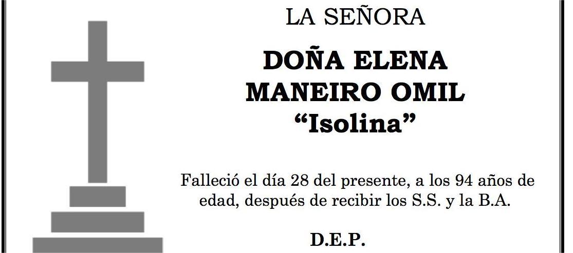 La funeraria LA FE comunica el fallecimiento ayer, día 27 de enero, de doña ELENA MANEIRO OMIL cuyos restos mortales permanecerán en el ...