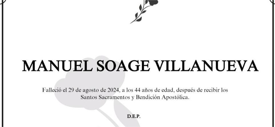 La funeraria SAN MARCOS comunica que, en la sala número 1 de su tanatorio en Marín, se velan los restos mortales de Don Manuel Soage Villanueva, ...