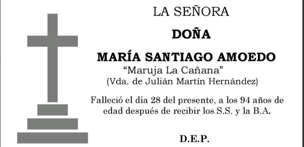 La funeraria LA FE comunica que, en la sala número 1 del tanatorio San Marcos en Marín, se velan los restos mortales de Doña María Santiago ...