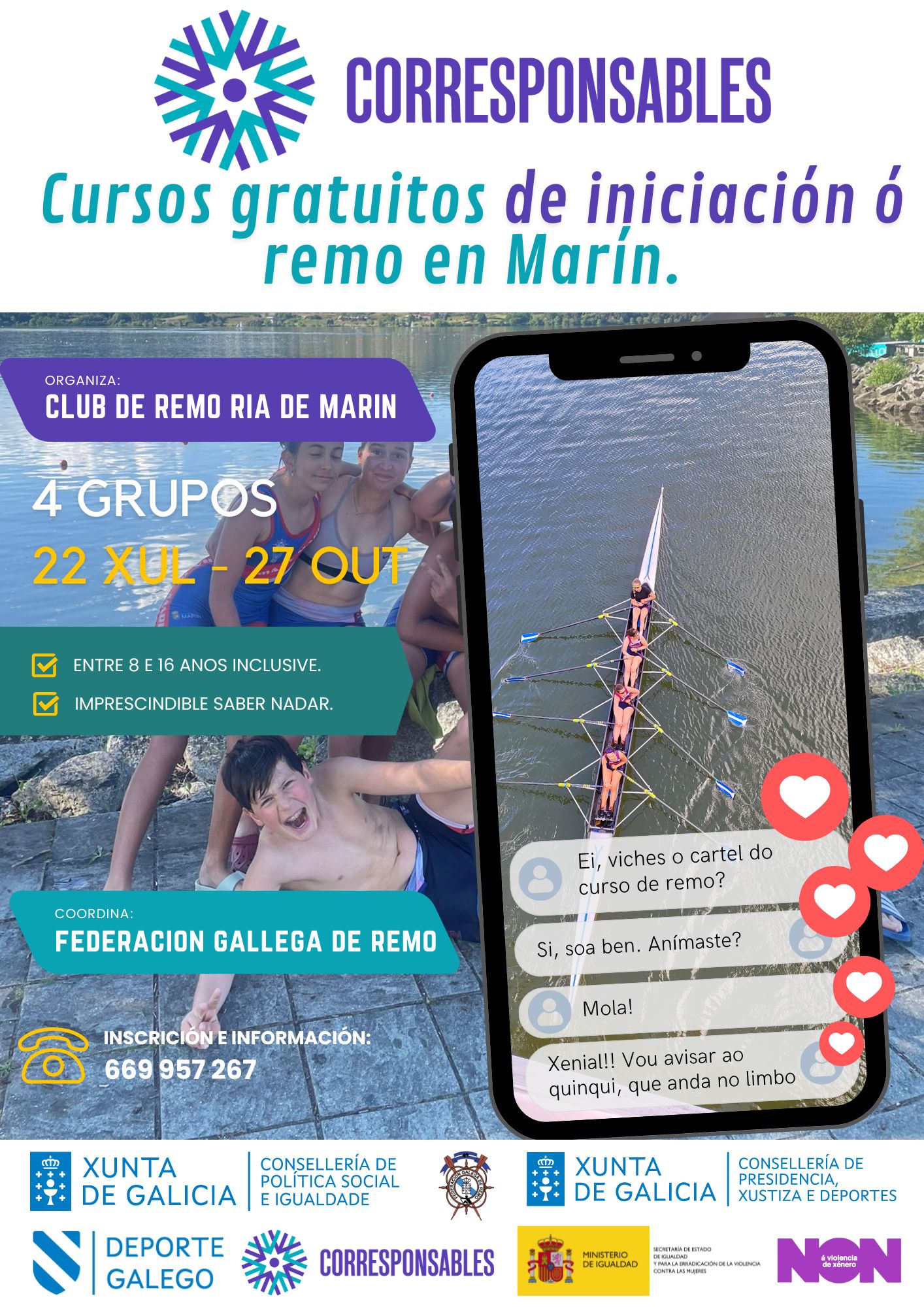 El Club de Remo Ría de Marín sigue con sus cursos de iniciación al remo. Este verano, gracias al programa Corresponsables, en ...