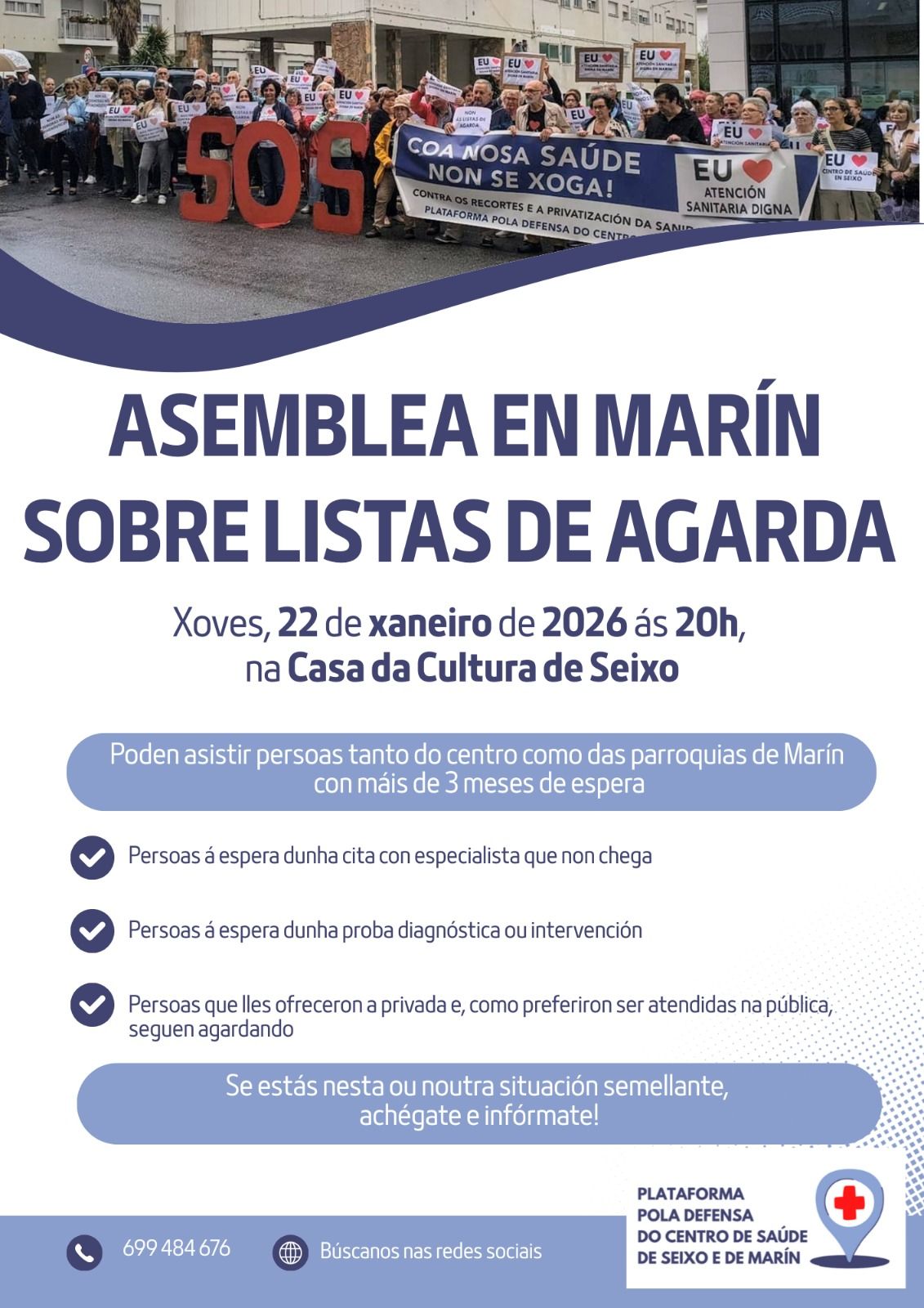A Plataforma Seixo-Marín convoca unha asemblea de persoas afectadas polas listas de agarda “ante a gravidade da situación xa ...