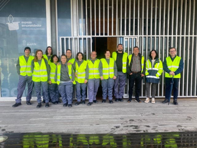 El grupo de diez alumnos participantes en el Obradoiro de Emprego Dual del Concello de Marín dedicado a la obtención de una certificación de profesionalidad en pesca ...