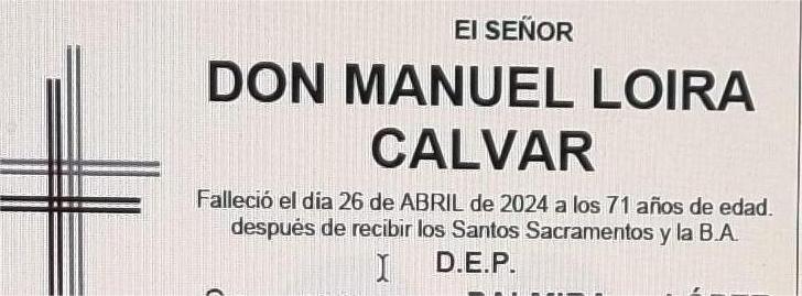 La funeraria Albia informa que en la sala de velaciones número 3 de su tanatorio en Marín se encuentran los restos mortales de Don Manuel Loira ...