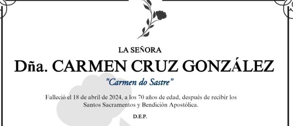 La funeraria San Marcos informa que en la sala de velaciones número 1 de su tanatorio en Marín se encuentran los restos mortales de Carmen Cruz ...