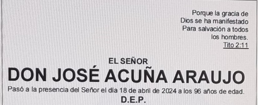 La funeraria Albia informa que en la sala de velaciones número 3 de su tanatorio en Marín se encuentran los restos mortales de Don José Acuña ...