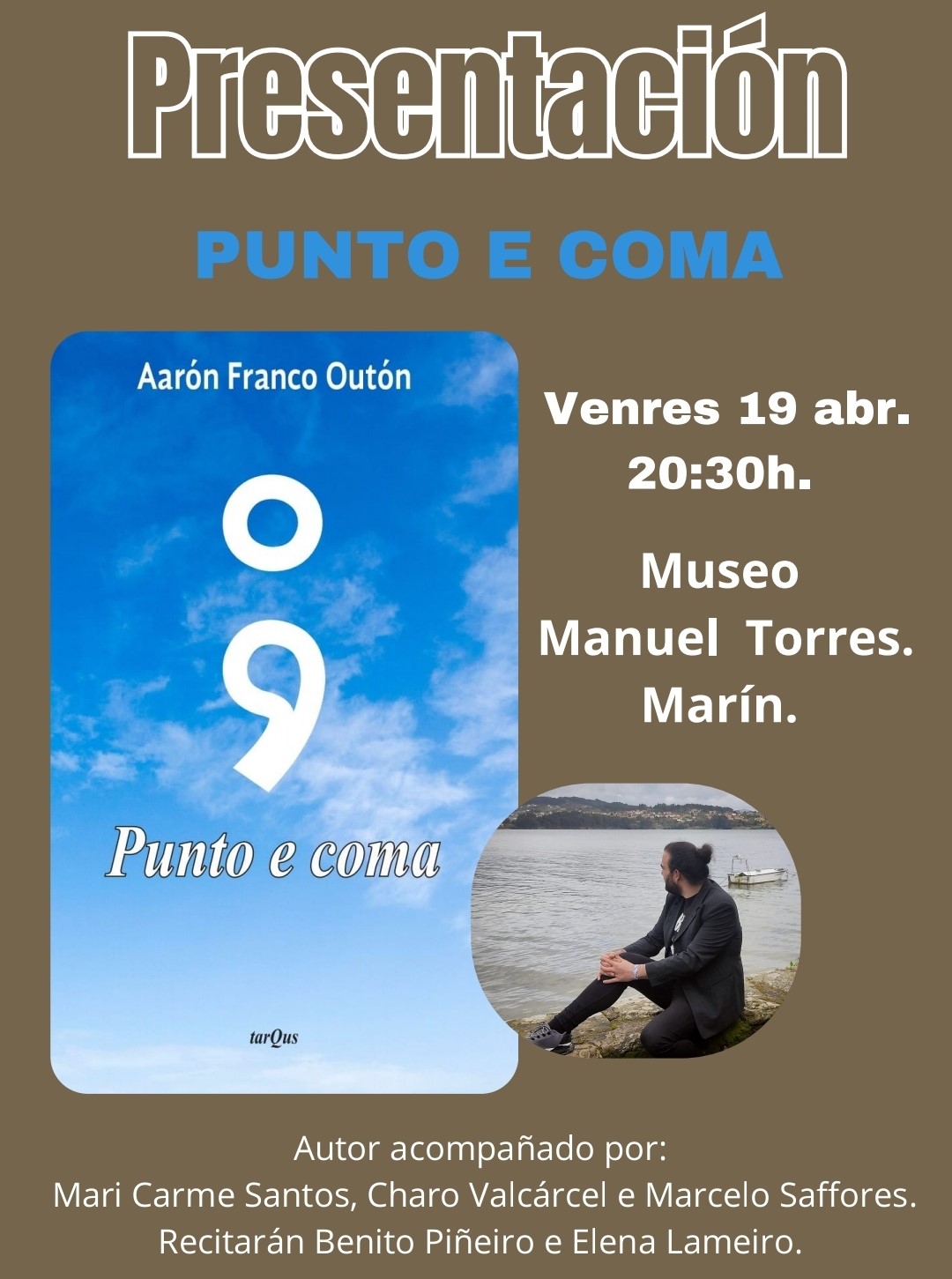 Hoxe venres, ás 20:30 horas no Museo Manuel Torres, terá lugar a presentación do libro Punto e coma, do poeta marinense Aarón Franco que ...