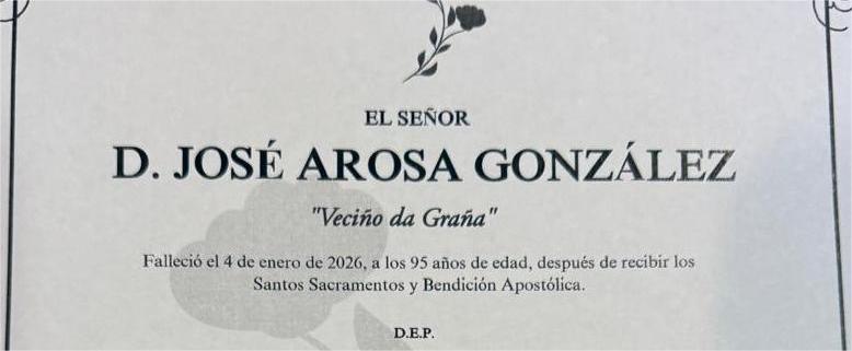 La funeraria SAN MARCOS comunica el fallecimiento hoy, día 4 de enero, de Don JOSÉ AROSA GONZÁLEZ cuyos restos mortales permanecerán en el ...