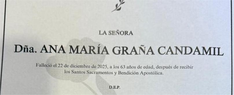 La funeraria SAN MARCOS comunica el fallecimiento ayer día 22 de diciembre de Doña ANA MARÍA GRAÑA CANDAMIL cuyos restos mortales ...