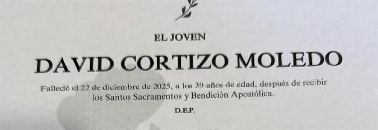 La funeraria SAN MARCOS comunica el fallecimiento ayer día 22 de diciembre de Don DAVID CORTIZO MOLEDO cuyos restos mortales permanecerán en el ...