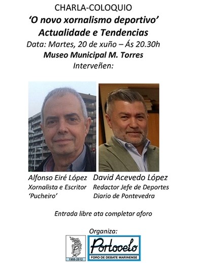 El Club de Opinión 'Portocelo' organiza una charla-coloquio sobre 'O novo xornalismo deportivo', que tendrá lugar el martes día 20 de junio , a las 20,30h en ...