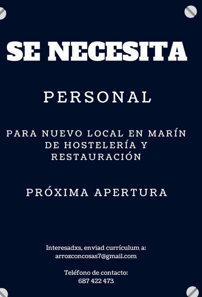 Nos llega a Carriola de Marín una solicitud de publicación de la convocatoria que un hostelero de prestigio hace para tratar de formar equipo de profesionales para ...