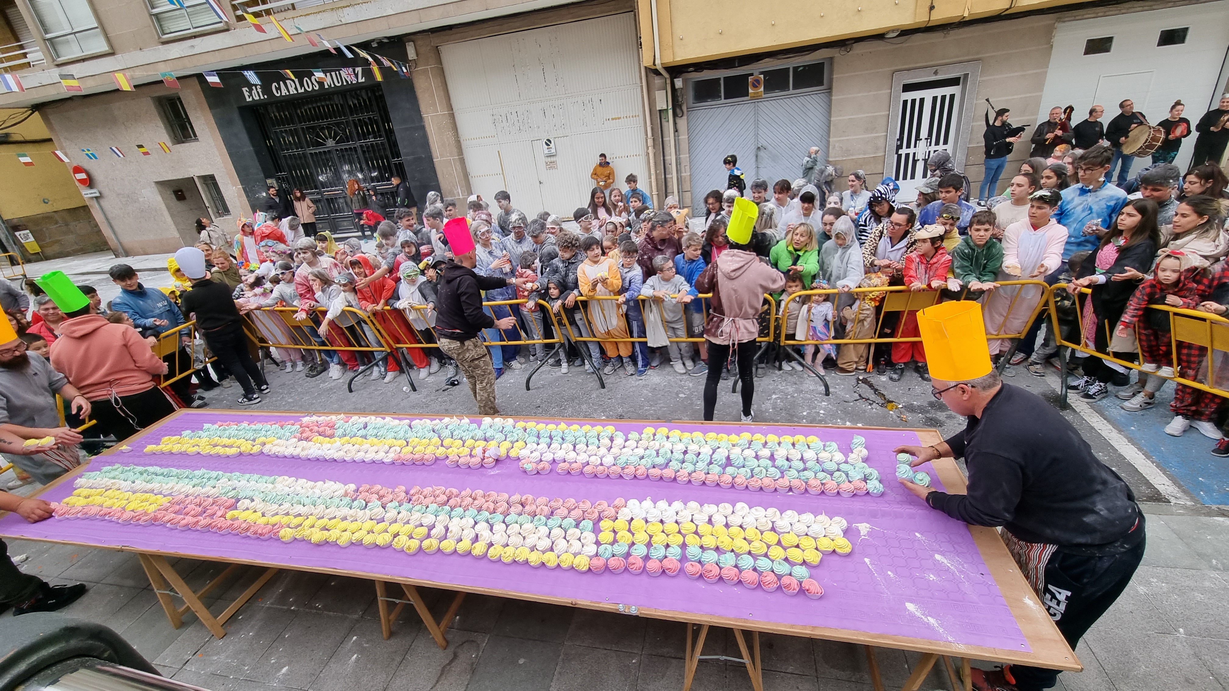 Varios cientos de pasteles merengue se repartieron entre los numerosos niños y jóvenes que acudieron a la convocatoria que cada lunes de carnaval se hace al efecto ...