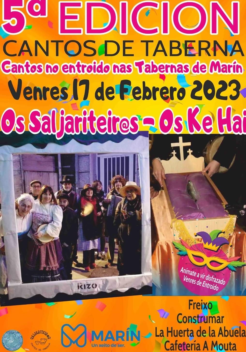 El intenso programa de Entroido se inicia hoy en Marín con el aperitivo de los Cantos de Taberna que organiza el animoso grupo “Os Saljariteiros” que alternarán ...
