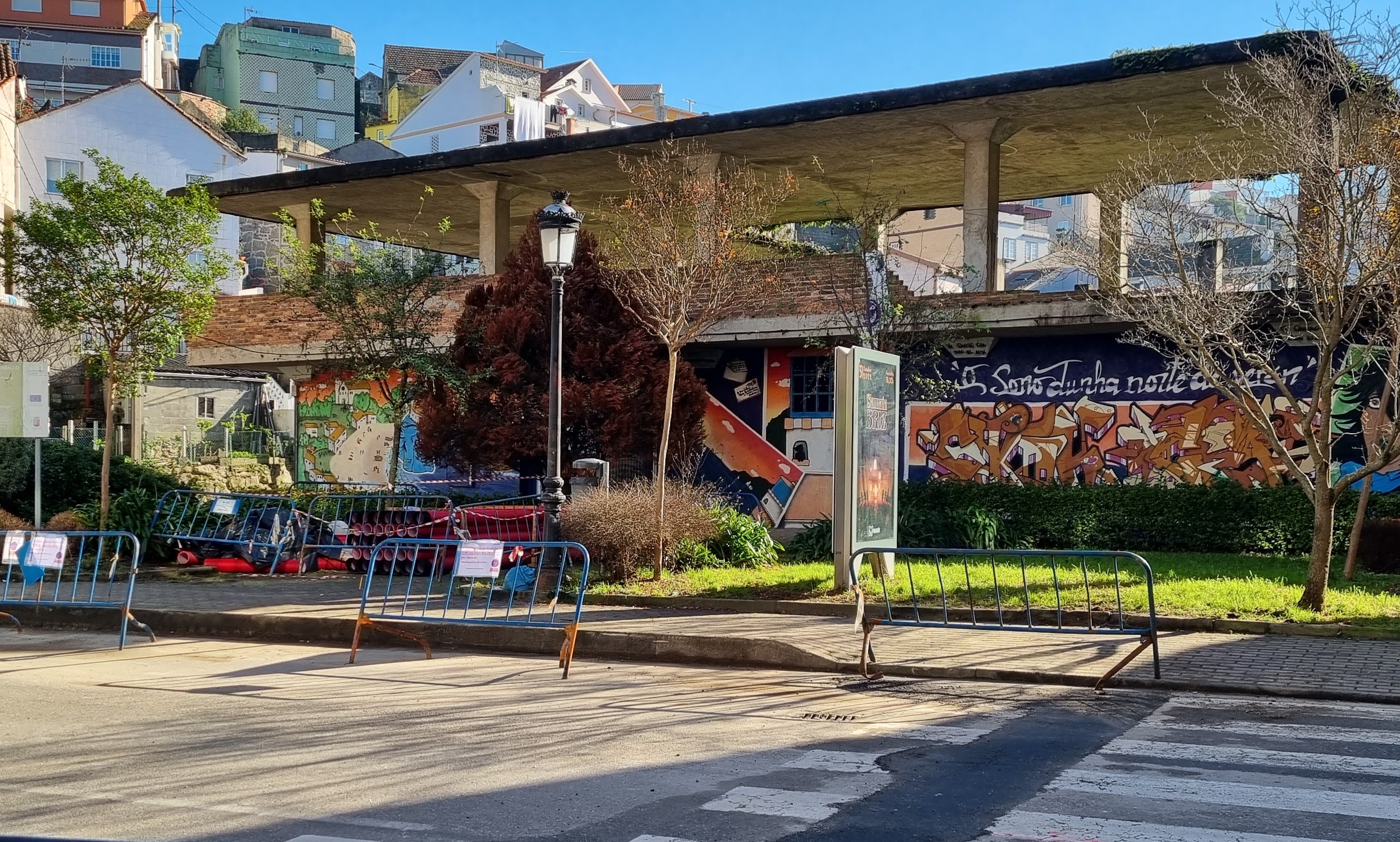 La vieja estructura de lo que a alguien de otros tiempos se le ocurrió ubicar un mercado de abastos en el límite de los concellos entre Marín y Pontevedra, tiene los ...