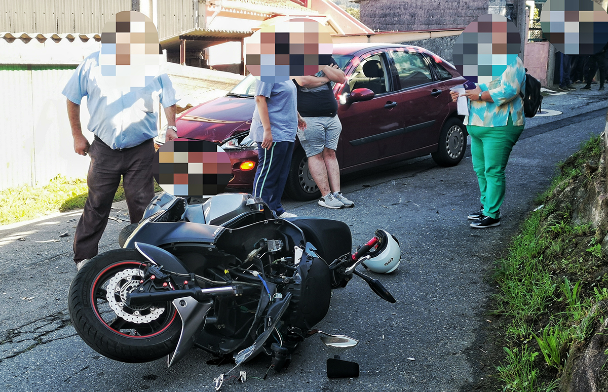 Los dos vehículos se encontraron en una carretera secundaria y el motorista tuvo que ser trasladado a Montecelo con heridas en un tobillo