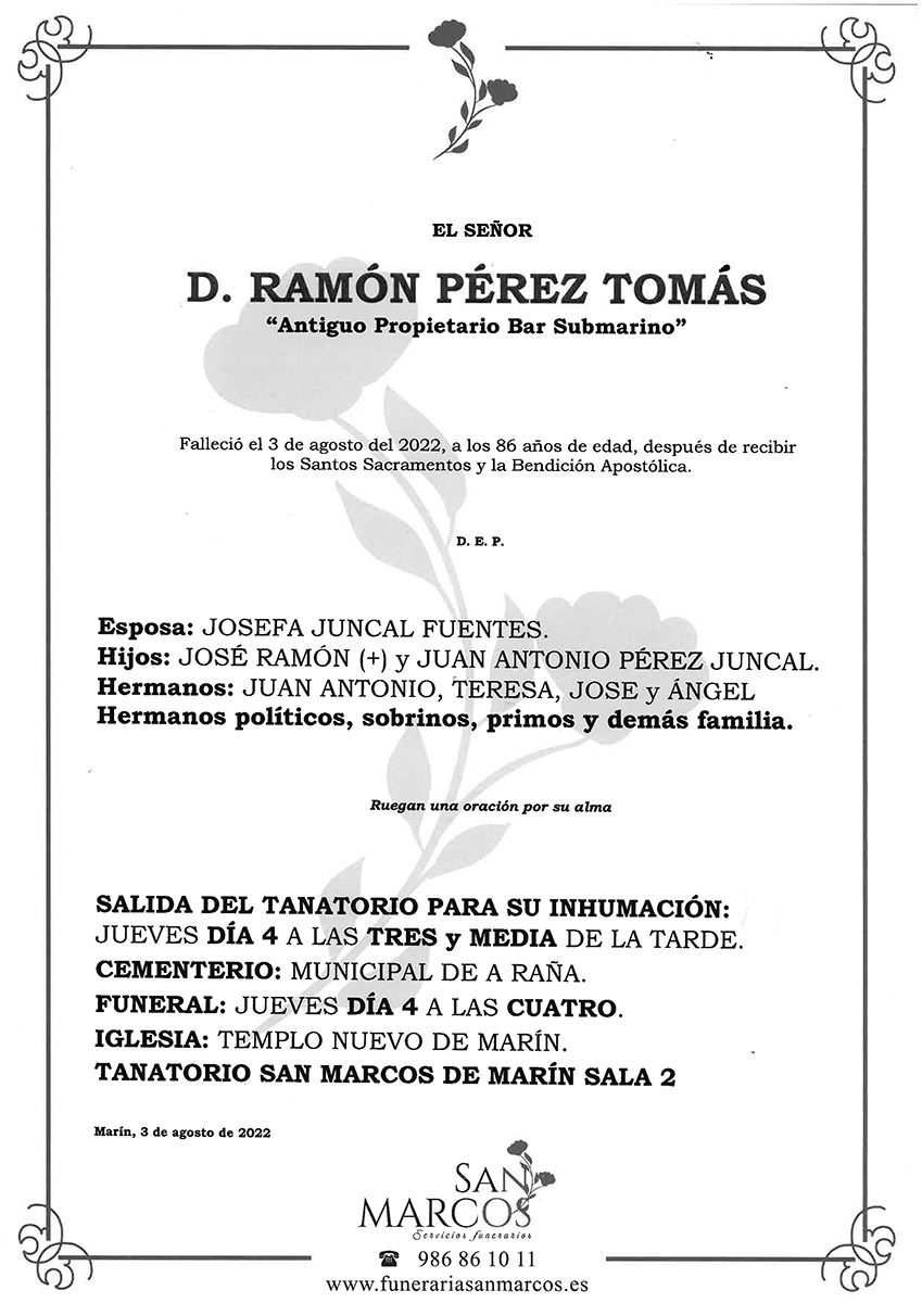 Nos llega la triste noticia del fallecimiento de Ramón Pérez Tomás, “Moncho”, propietario que fue del famoso restaurante “El Submarino” donde trabajó como ...